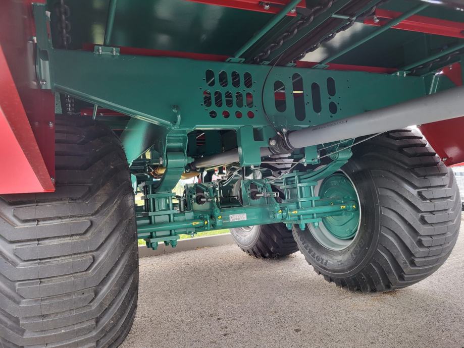 Pogon transportne trake je izveden preko hidrauličnih motora i zupčanika, bezstupanjska regulacija brzine, pomak trake je moguć naprijed i natrag, 2 x 2 masivna lanca strugača 14 x 50 mm sa stabilnim letvicama, upravljanje transportnom trakom iz kabine, automatsko zatezanje lanaca pomoću vijčanih opruga, pogon preko prednjeg dvozglobnog kardanskog vratila WALTERSCHEID pogonskog vratila i stražnjeg kardanskog vratila sa sigurnosnim prekidačem 1500 Nm, broj okretaja pogonskog vratila 1000 okr./min.