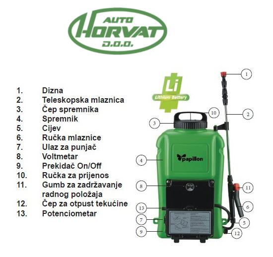 PRSKALICA LEĐNA AKU 12V 8Ah Li-Ion "PAPILLON" 12lit