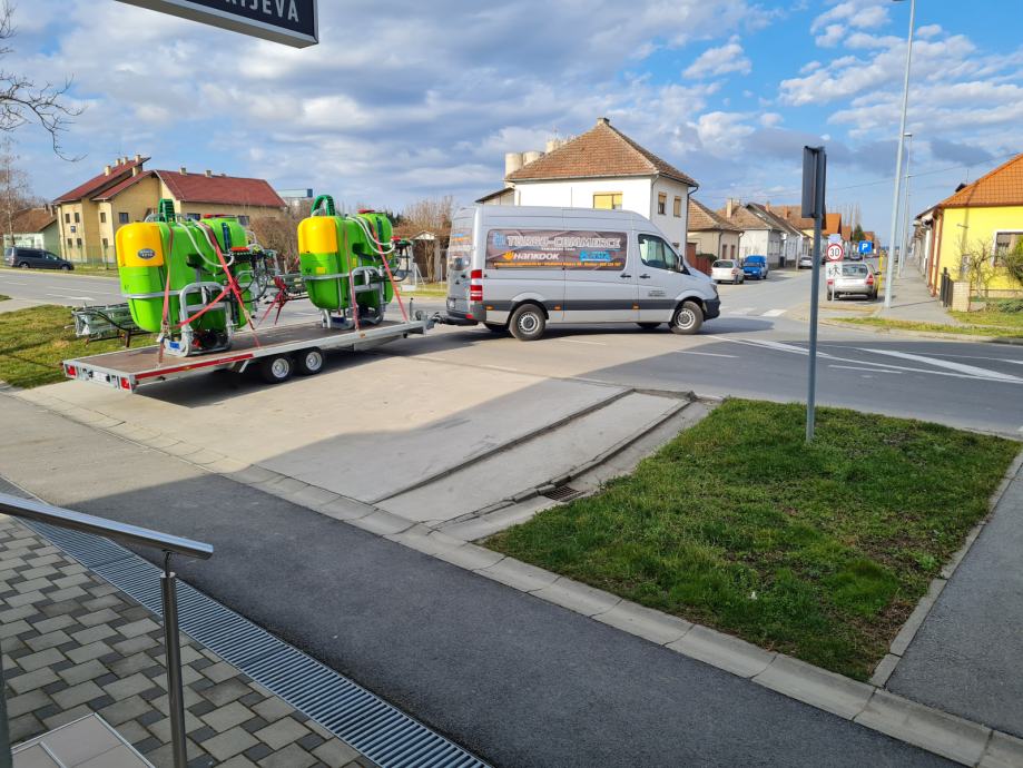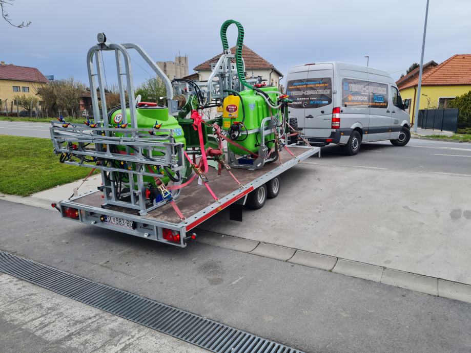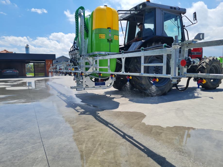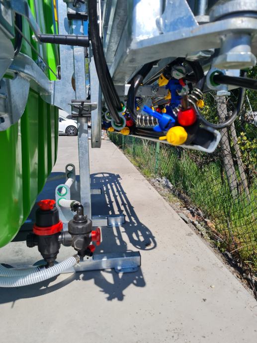 zapremine 1200 litara, grane pocincane 15 m, razvodnik FERMO 5 sekcija, triplex dizne, pumpa 140 lit TOLVERI, 3 rezervara.