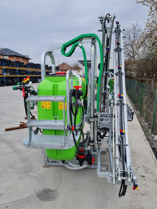 800 lit zapremine, 3 rezervara, pumpa 140 lit TOLVERI, hidraulicna regulacija grana ( dizanje/spustanje, nagib, otvaranje/zatvaranje ), triplex dizne - razvodnik 5 sekcija s pali/gasi elektro ventilom.