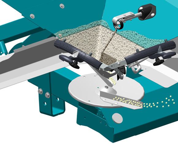 Točka postavljanja: ovo je najjednostavniji mehanizam za podešavanje radne širine. Za njegovo podešavanje nije potrebna promjena brzine vrtnje diska ili noževa za izbacivanje.