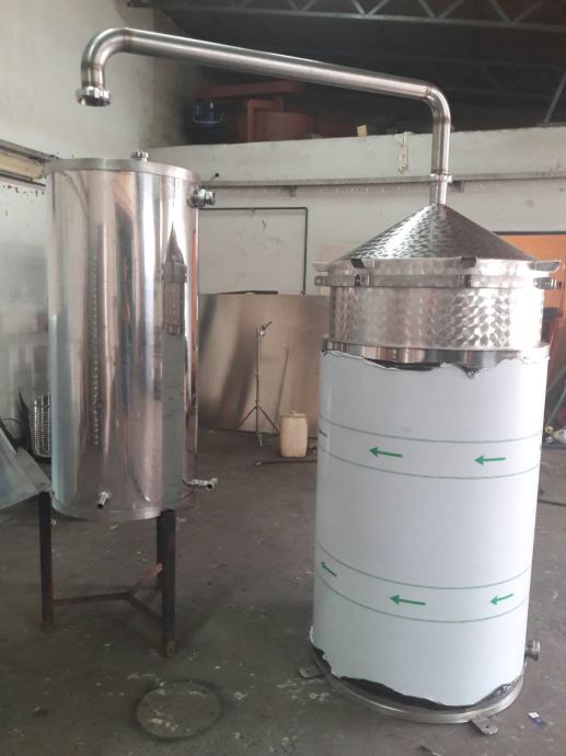 Prodajem destileriju za proizvodnju etericnih ulja 650 litara. Destilerija se sastoji od spiralnog hladila, kotla, firjontinske boce, perforirane resetke i parogeneratora.