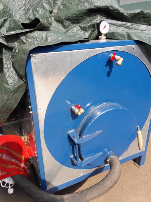 Parogenerator je na kruta goriva i ima na sebi puhalnik radi boljeg izgaranja drva i vecu temperaturu pare.