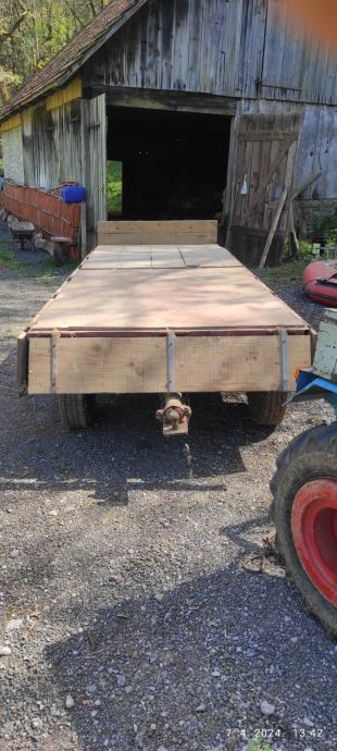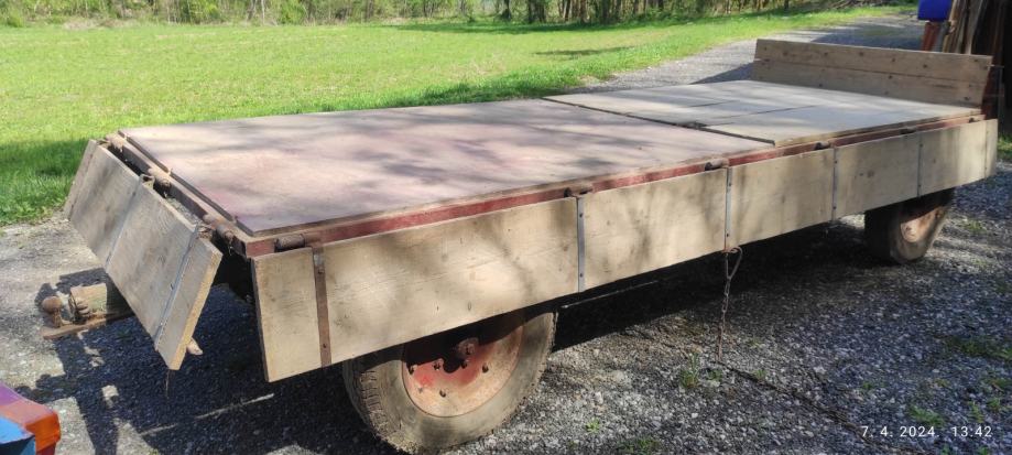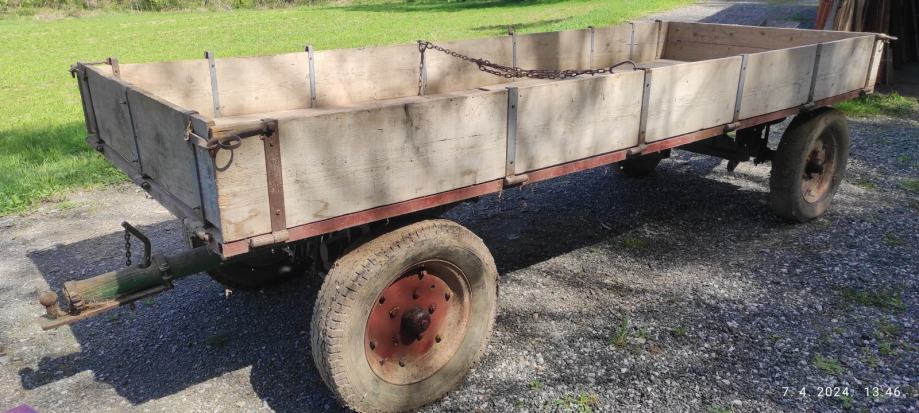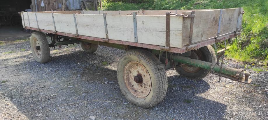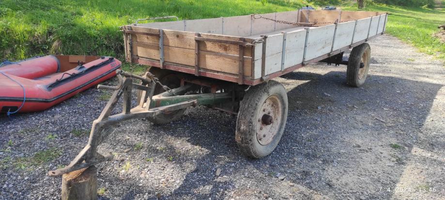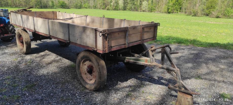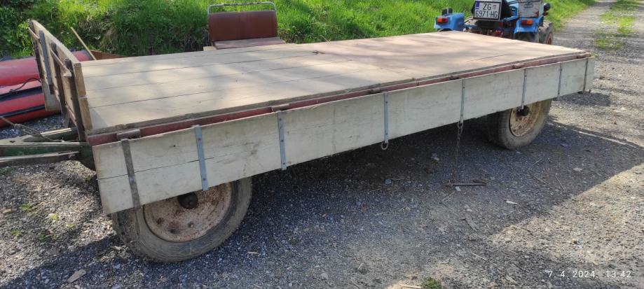 Prodajem kola za traktor nosivost 3 t, gumeni kotači 6,50x16 cola, sanduk 4,0x1,5 x0,3 m, s prednjom i zadnjom kočnicom.