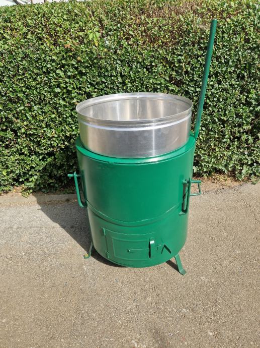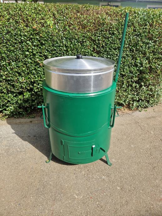 Prodajem brzoparni kotao od 80litara za grijanje vode, kuhanje stočne hrane i slično. Kotao je na kipanje i izrađen je od prehrambenog aluminijskog lima 2mm. Ložiste je napravljeno od vatrootpornog kotlovskog lima 1.5mm.