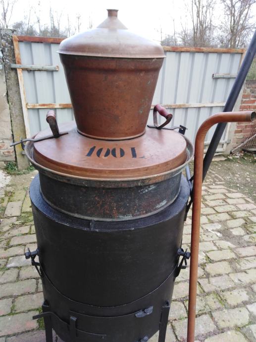 Prodajem rabljeni dobro očuvani u ispravnom stanju kotao za pečenje rakije zapremine 100 litara. Kotao je posljednji put korišten prije više godina (5-7 godina).
