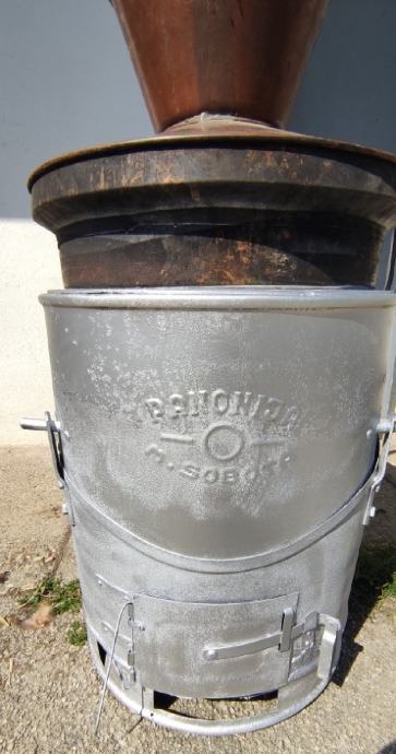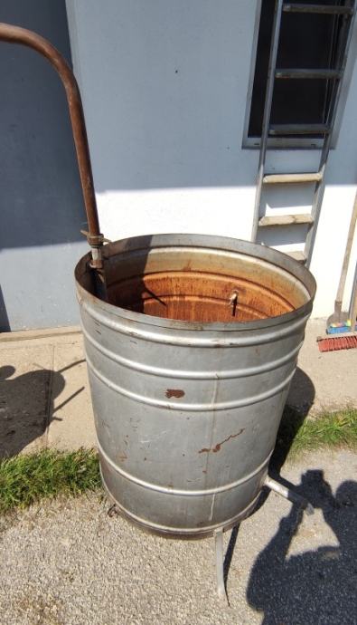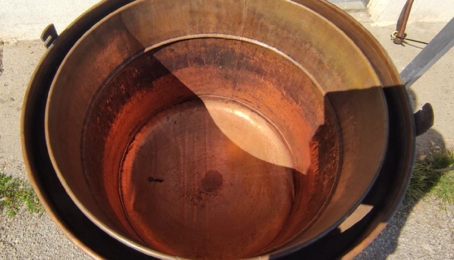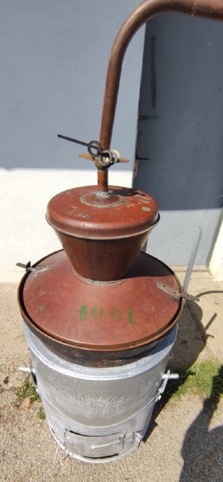 Prodajem kotao za rakiju 100l. Panonija, star 20 tak godina. Zadnjih godina rakiju sam pekao na plinski plamenik. U početku se ložilo na drva. Kotao je u kompletu (kotao, spojna cijev i posuda za hlađenje). Ispravan je i još može ispeći dosta rakije. Ne cjenkam se. To je konačna cijena.