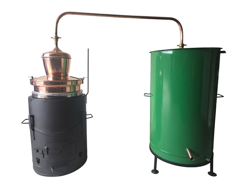 Dupla stijenkaKotao ima duplu stijenku u kojoj se nalazi glicerinsko ulje radi spriječavanja zagaranja materijala. Pogodno za kuhanje materijala koji su skloni primanju za dno kotla npr. kruška, jabuka itd.Bakreni kotaoBakreni kotao se sastoji od posude i poklopca. Posuda je izrađena od bakrenog dna debljine 2,0 mm, plašta 1 mm te šilta za vodeno hlađenje od 1 mm. Poklopac je kompletno od bakra debljine 1 mm. Između posude i poklopca je žljeb za vodu koji se koristi za hermetičko zatvaranje. Pod pritiskom temperature garantira protok pare u cijev.LožišteLožište je izrađeno kompletno od željeznog lima debljine 2,0 mm sa ručkama za nošenje, vratima, ovojnim pojačanjima, izlazom za dimnjak i sistemom za prevrtanje.HladnjakHladnjak je željezna bačva sa ovojnim pojačanjima, ručkama za nošenje, sigurnosnim ispustom, navojem za pipu i ugrađenom spiralom.Volumen hladnjaka je 300 litara.NapomenaKotao i hladnjak se spajaju preko cijevi prevodnice koja se na kotao ili hladnjak montiraju mesinganim konusnim holenderima. Kotao je tvornički postavljen dau vodoravnom položaju, kada je kotao spojen sa bačvom na stalku preko cijevi prevodnice, ima 1,2 cm pada prema bačvi što osigurava kvalitetniju destilaciju.
