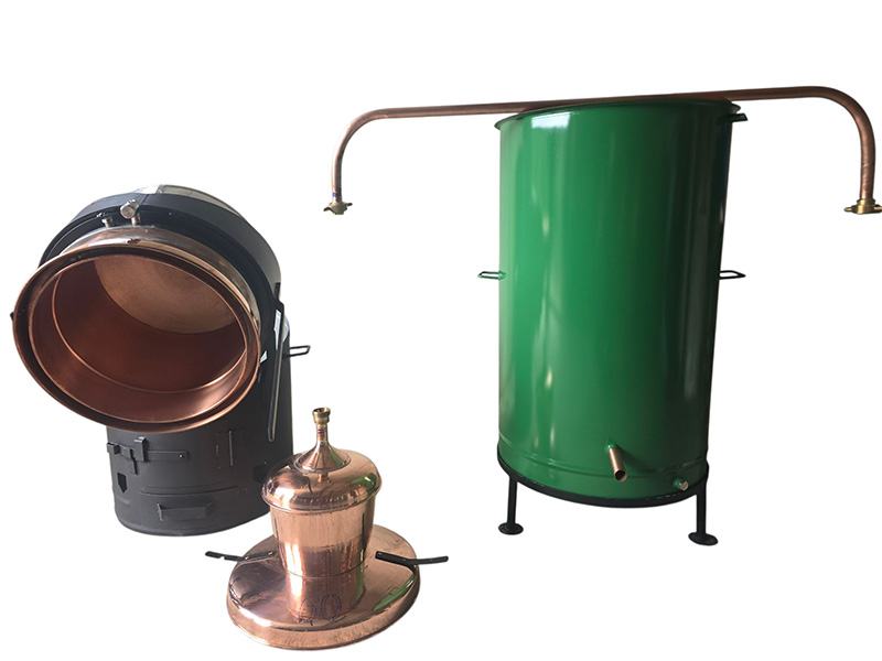 Dupla stijenkaKotao ima duplu stijenku u kojoj se nalazi glicerinsko ulje radi spriječavanja zagaranja materijala. Pogodno za kuhanje materijala koji su skloni primanju za dno kotla npr. kruška, jabuka itd.Bakreni kotaoBakreni kotao se sastoji od posude i poklopca. Posuda je izrađena od bakrenog dna debljine 2,0 mm, plašta 1 mm te šilta za vodeno hlađenje od 1 mm. Poklopac je kompletno od bakra debljine 1 mm. Između posude i poklopca je žljeb za vodu koji se koristi za hermetičko zatvaranje. Pod pritiskom temperature garantira protok pare u cijev.LožišteLožište je izrađeno kompletno od željeznog lima debljine 2,0 mm sa ručkama za nošenje, vratima, ovojnim pojačanjima, izlazom za dimnjak i sistemom za prevrtanje.HladnjakHladnjak je željezna bačva sa ovojnim pojačanjima, ručkama za nošenje, sigurnosnim ispustom, navojem za pipu i ugrađenom spiralom.Volumen hladnjaka je 450 litara.NapomenaKotao i hladnjak se spajaju preko cijevi prevodnice koja se na kotao ili hladnjak montiraju mesinganim konusnim holenderima. Kotao je tvornički postavljen dau vodoravnom položaju, kada je kotao spojen sa bačvom na stalku preko cijevi prevodnice, ima 1,2 cm pada prema bačvi što osigurava kvalitetniju destilaciju.
