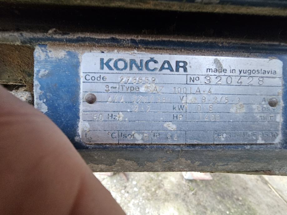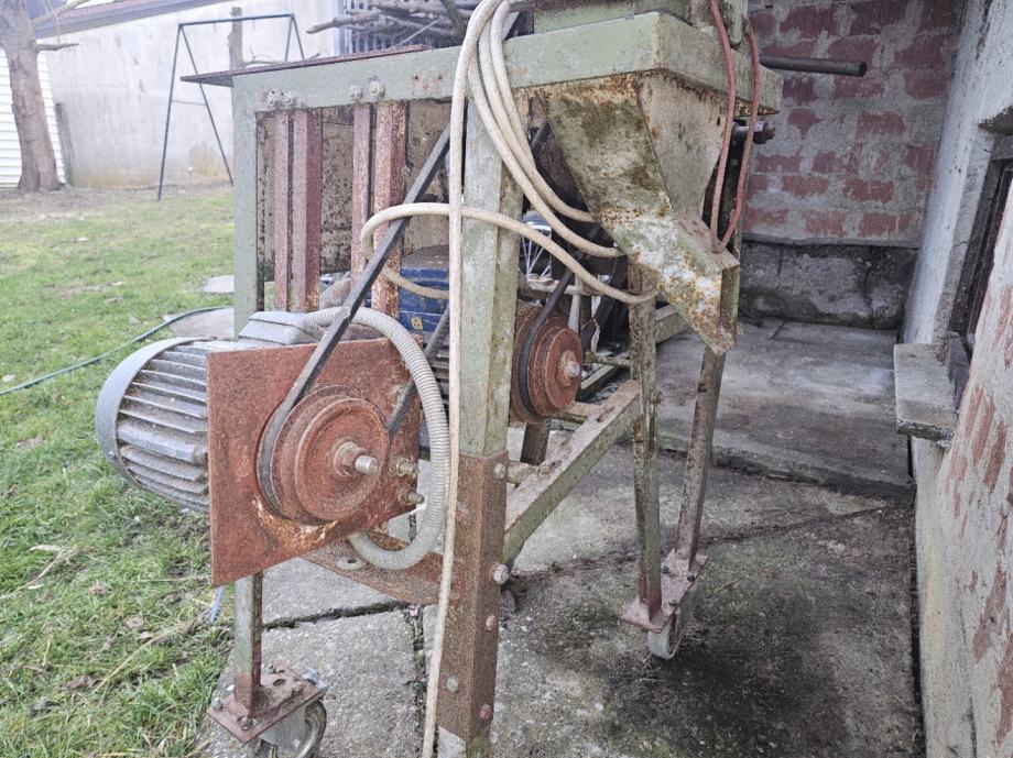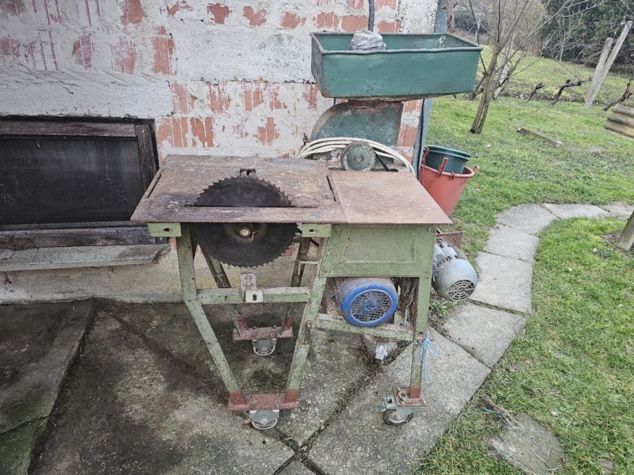 2 trofazna elektromotora, 2.2kw (cirkular) i cca 1kw (mlin) - različiti promjeri remenica, mogu se mijenjati brzine vrtnje po potrebi