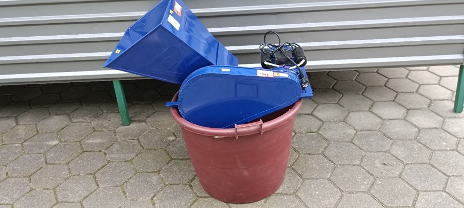 Prodam jaki tvornički elektručni jednofazni mlin za voče,1.1 kw.ima guste rešetke i noževe na koso spiralno na valjku- osovini sa zatvorenim ležajevima,tako da sve drobi u kašu.Mlin je sa jakim elektro motorom sa elektro magnetnim kočnicama ,odma staje,kad se ugsi, ne vrri dalje.Prodam za 699 e.Kapacitet do 500 kg ,kolio se nasipava,toliko mulja,melje i drobi.To je gotovo neuništiv stroj,za velike količine voča.Moguča dostava poštom,ili osobno preuzimanje a može i isprobavanje kako radi.