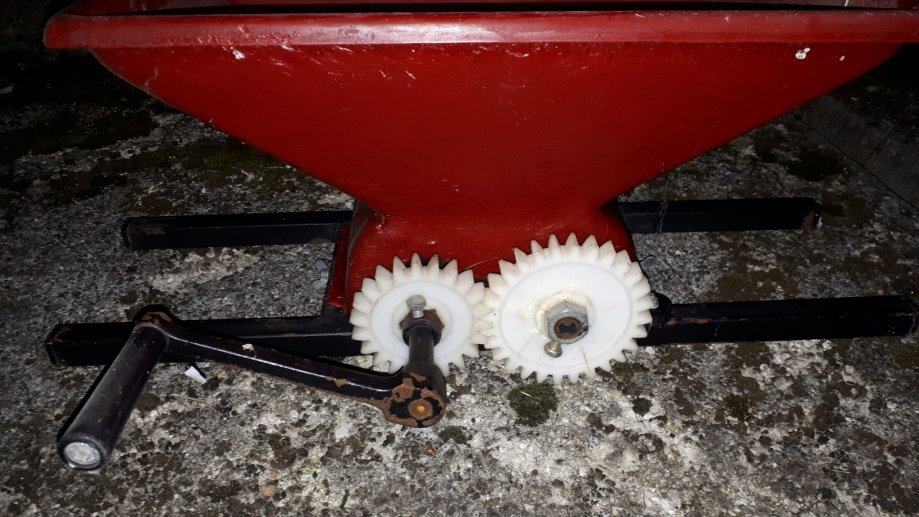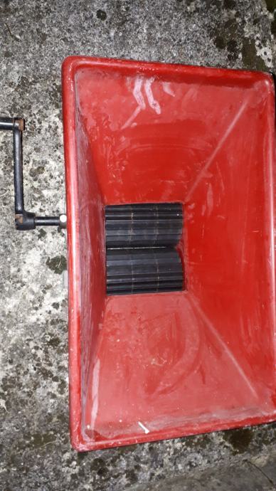 Prodajem očuvanu, svega par puta korištenu muljaču za grožđe, crvene boje, iz materijala kompozitne plastike.