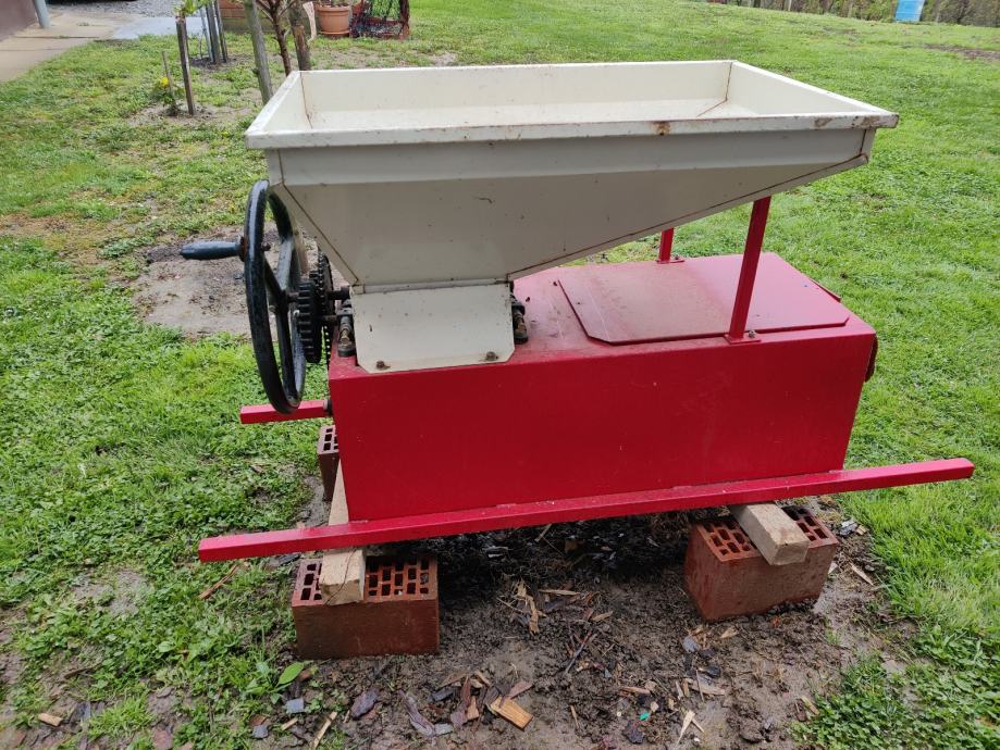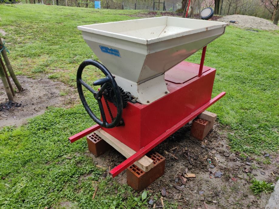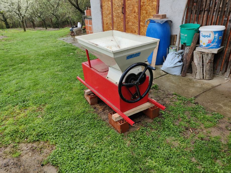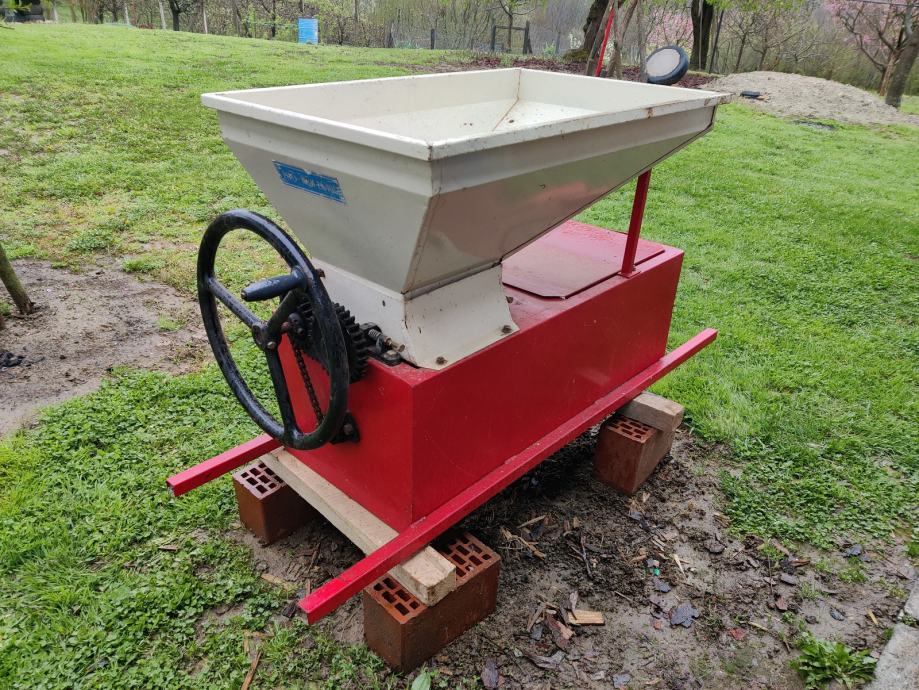 Prodaje se mlin za voće (za grožđe s odvajanjem peteljki) na ručni pogon.Cijena 50 €