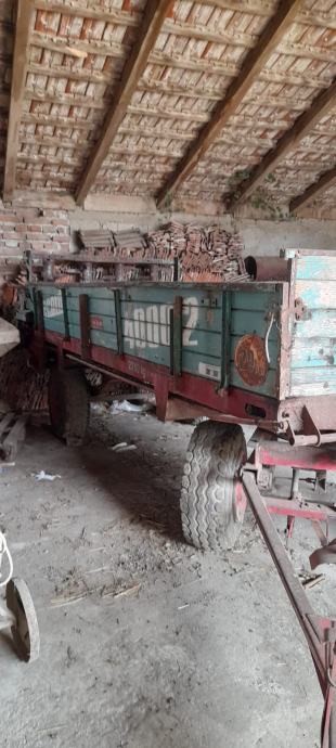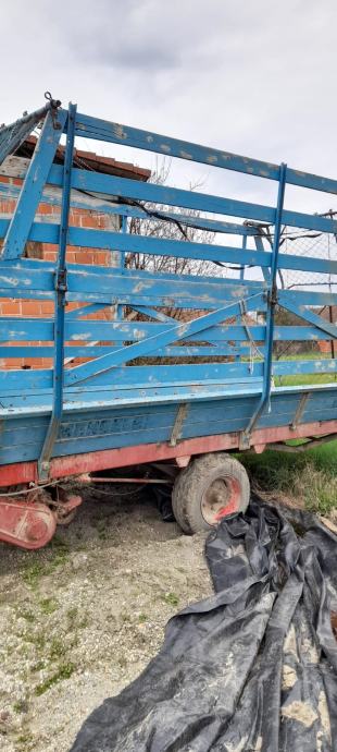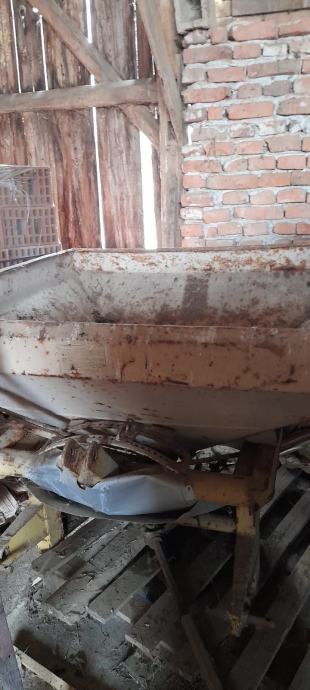Prikolica za gnoj UCIN 2 osovine, 4 okomita valjka. Rasipač umjetnog gnojiva KOMET 500kg.