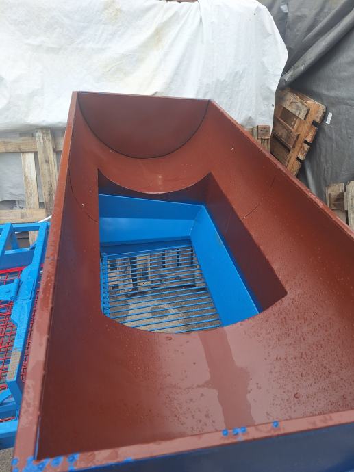Na sortirač je dodatno ugrađen prošireni usipni koš u kojega se direktno može sipati krumpir iz box palete. ( Vidi slike )