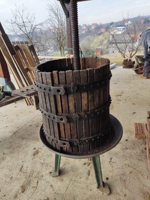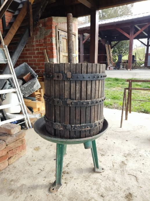 Stara preša za grožđe i voće ispravna može služiti kao ukras na vikendici ili vinariji,podrumu