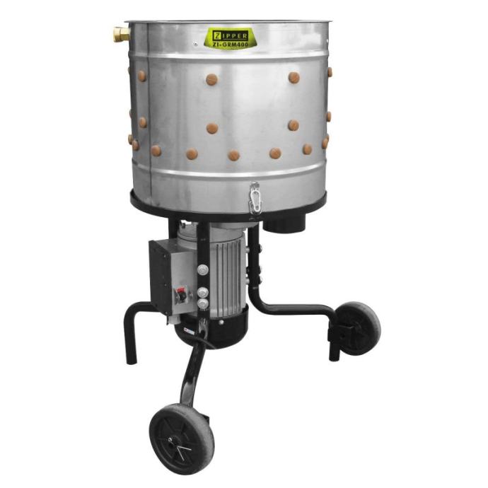 Stroj ZI-GRM400 Zipper mašina je za brzo i učinkovito čišćenje perja i nečistoća sa peradi. Snažan motor, gumeni batići, dovod za vodu, bubanj izrađen od nehrđajućeg čelika (odobren za kontakt sa namirnicama) i čvrsta konstrukcija stroja sa kotačima za transport, garancija su besprijekorno praktičnog i učinkovitog rada. Stroj za čišćenje peradi ZI-GRM400 Zipper idealan je za manja poljoprivredna gospodarstva koja se bave uzgojem zdrave domaće peradi.