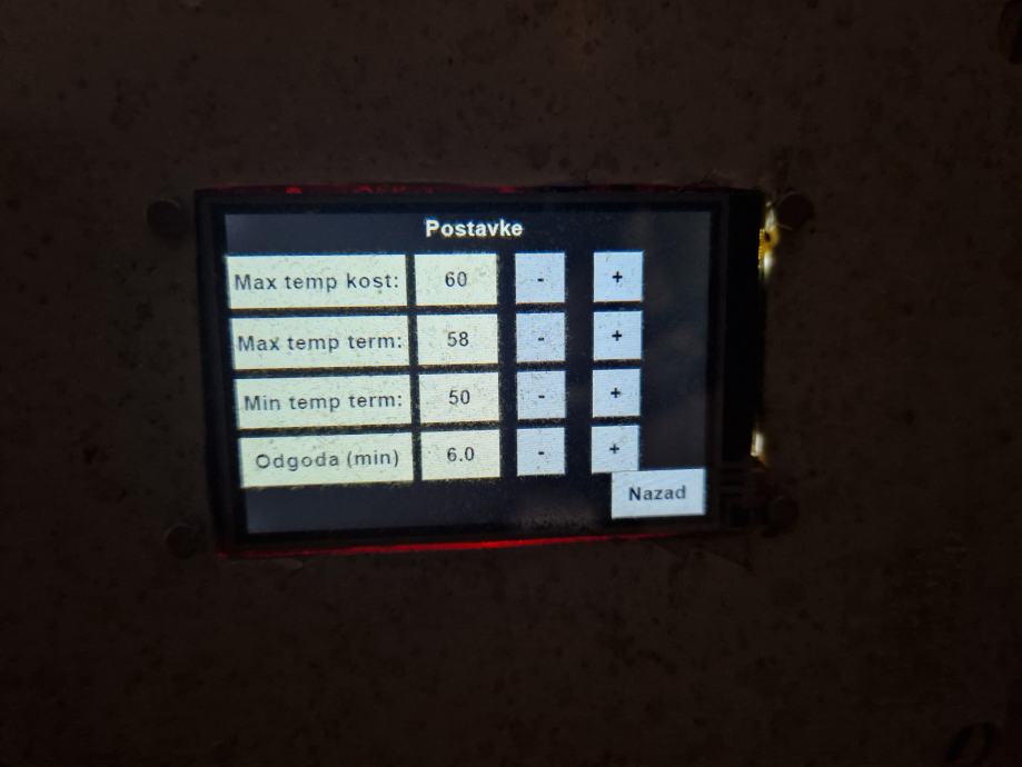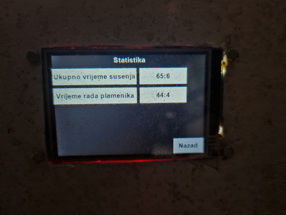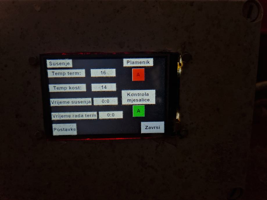 Automatika regulira temperaturu termogena i koštica. Na ekranu osjetljivim na dodir, prikazuju se informacije o temperaturama termogena, koštica i vremenu sušenja izraženim u minutama.