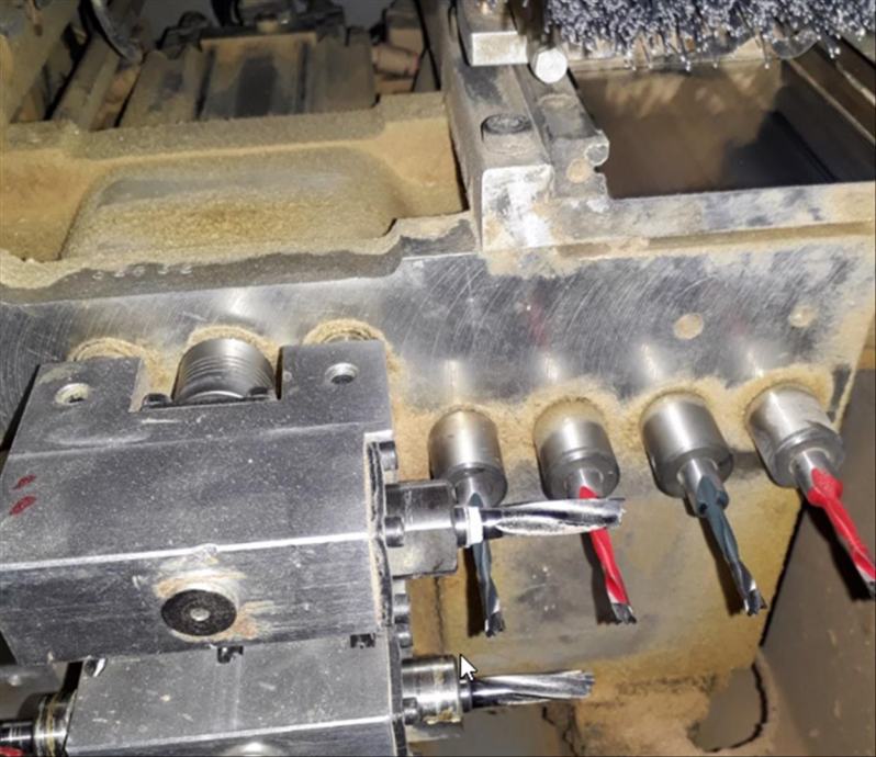 - Kutni agregati: 1 kutni agregat 90° za izradu žlijebova za brave (ključavnice) i ostalih horiznotalnih stvari
