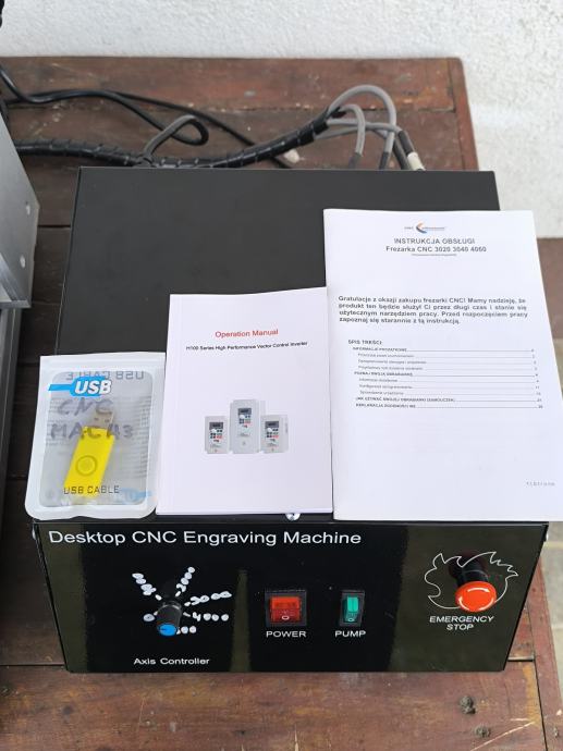 CNC glodalica, stick sa programom mach3, 2 seta glodala, stezači, set čahura 1-7.