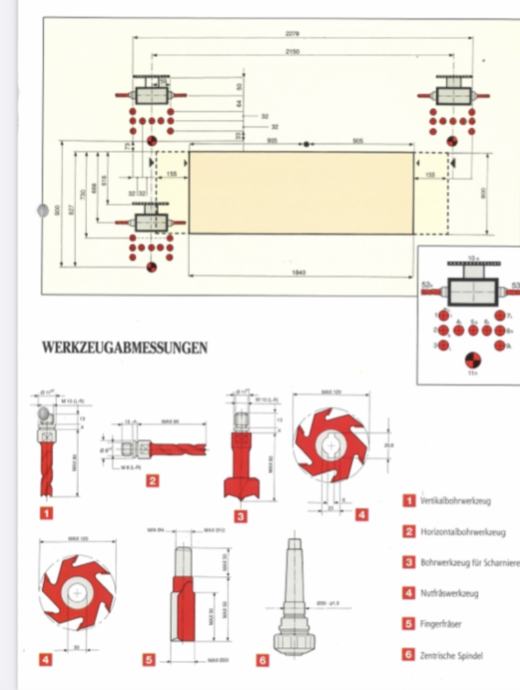 Za bušenje svih rupa na ormarima i kuhinjskim elementima . Odozgor i s tri strane bočno .Prorezivanje pilom za gornje kuhinjske elemente . Savršen za stolare koji rade s Iveralom , nalazi se u Slavonskom brodu u radu -može se isprobati .Jedan motor za frezanje - sve se može raditi i krug . Program na stroju jednostavan za programiranje .