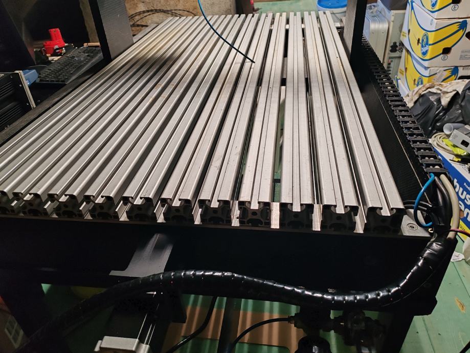 Prodaje se samo CNC stol za laser ili glodalicu (bez elektronike) radne površine X=53cm, Y=90cm, Z=20cm sa linearnim vodilica a 20mm za Y os, i 16mm za X i Y os. Navojna vretena za X i Y os SFU 1605 sa mazalicama za podmazivanje, ležajevima BF12/BK22 a navojno vreteno Z osi je 1002. Na njemu su tri NEMA 23 motora 23HS8430 s krajnjim prekidačima, vodilica a za kablove, cjevčica za pripremu za zrak, kompletnim kablovima sa četri pinskim konektorima. Okvir je napravljen od ljpljene vodo otporne šperploče (blažujke) 32mm, vozni dio X i Z osi od 22mm. Površina na koju se stavlja drvo (može i plastika i aluminij) od dur aluminija 40x40mm. Može se pokretati sa mach 3, arduino hardverom ili bilo kojim drugim. Kod mene se je pokreta s arduinom i najviše sam koristio laser. Za više informacija slobodno nazovite.