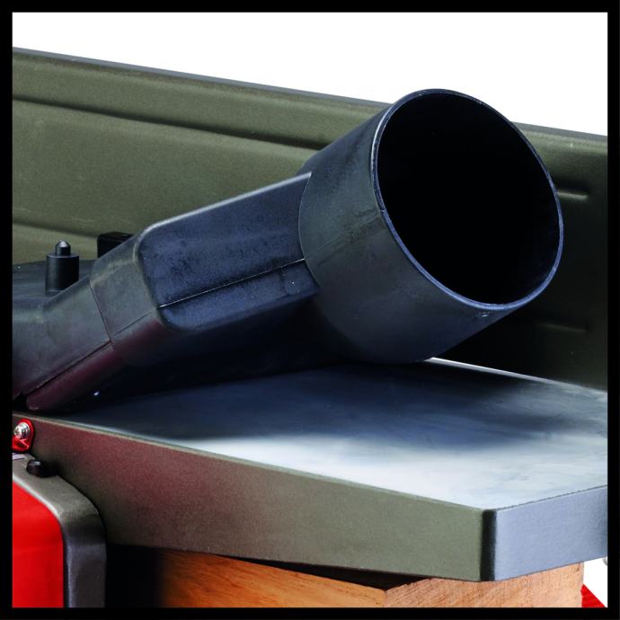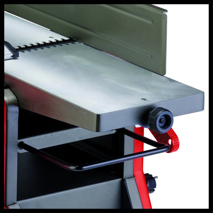 Einhell stolna blanja TC-SP 204/2 je visokokvalitetni, čvrsti stroj s 1.500 W snage za precizno, brzo struganje i obrađivanje. Sa svojim visokim učinkom, stolna blanja održava konstantno visoku brzinu osovine noža do 9000 okretaja u minuti i tako osigurava optimalne rezultate struganja. Stilna blanja s rastezljivim izlaznim nosačem i brzim, automatskim posmakom od 6 m/min omogućuje udobno rukovanje. Zahvaljujući podešavanju visine, skidanje materijala može se fino podesiti pomoću ručne poluge do 3 mm kod obrade i 2 mm kod struganja. Stolna blanja dolazi s dvije izdržljive oštrice HSS kvalitete. S visinom prolaza do 120 mm i širinom prolaza od 204 mm, stroj je prikladan za obradu ploča, letvica ili manjih greda. Kako bi radno mjesto bilo čisto, možete, na primjer spojiti usisni sustav na usisni adapter Ø 100 mm. Stol za struganje površina izrađen je od čvrstog aluminija i ima graničnik koji se može nagnuti do 45°. Osim čvrste konstrukcije, noge za prigušivanje vibracija također osiguravaju potrebnu stabilnost. Za maksimalnu sigurnost, stolna blanja ima prekidač protiv preopterećenja i prekidač nultog napona koji sprječava slučajno pokretanje stroja nakon nestanka struje.