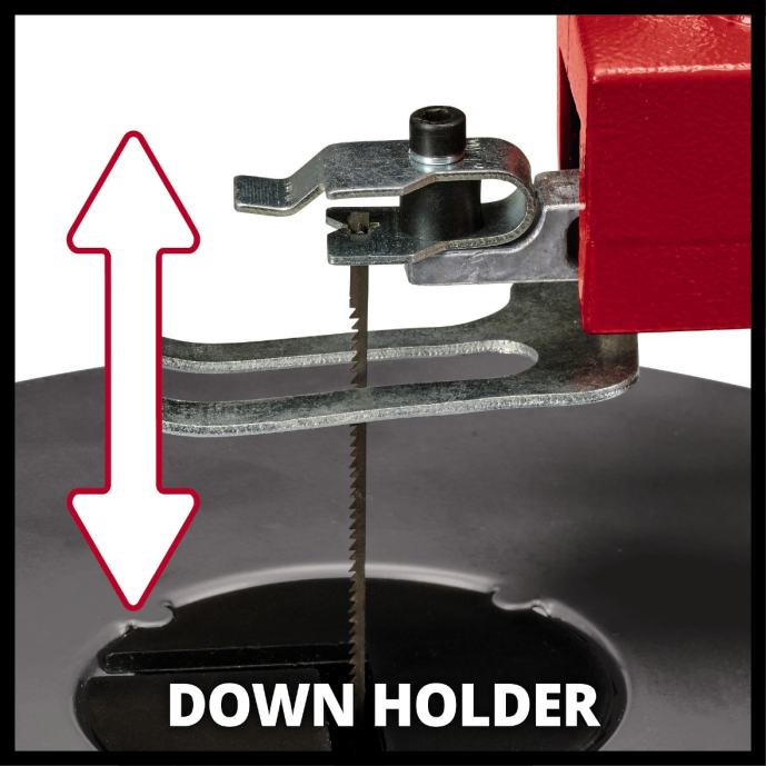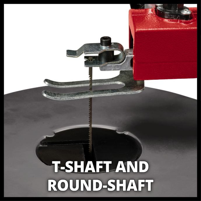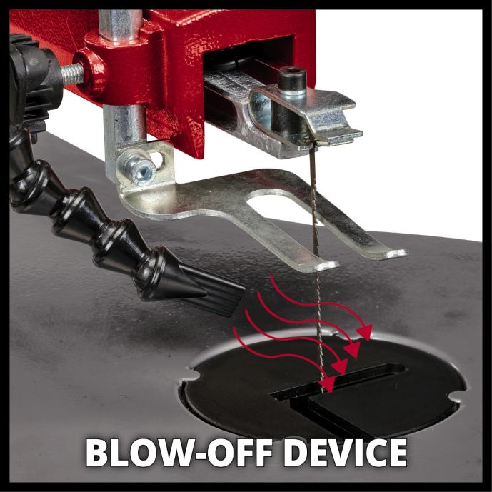 Einhell pila za izrezivanje TC-SS 406 E savršen je alat za izradu modela i komplicirane poslove piljenja. Ova pila radi sa 120 W snage i maksimalnom visinom rezanja od 50 mm. Učinak i brzina se mogu optimalno prilagoditi prema potrebi uz pomoć regulacije brzine. Čvrsti okvir osigurava sigurno postolje, dok sama težina uređaja od 12,15 kg također prikladna za fleksibilnu, mobilnu upotrebu zahvaljujući svom kompaktnom dizajnu. Zahvaljujući robusnom čeličnom radnom stolu, koji se može nagnuti do 47°, čak i kutni rezovi mogu se izvesti brzo i jednostavno. Praktični držač obratka osigurava sigurno i precizno vođenje obratka koji se pili i pouzdano ga drži na stolu pile. Listovi pile se mogu mijenjati brzo i jednostavno. Uz pomoć integriranog puhala, uređaj za puhanje osigurava jasan pregled radnog područja i time olakšava izvođenje preciznih rezova. Zahvaljujući priključku za usisavanje prašine (promjer 36 mm), radno mjesto se može održavati čistim bez napora, na primjer, uz pomoć Einhell mokro/suhog usisavača. Za stacionarni rad, pila za izrezivanje se također može pričvrstiti vijcima na radni stol. Pila za izrezivanje TC-SS 406 E isporučuje se s dva lista pile.