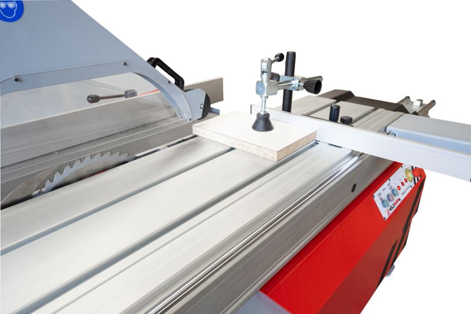 - sa velikim aluminijskim kliznim stolom i potpornim stolom idealnim za obradu velikih radnih komada, kao i za rezanje velikih, teških ploča