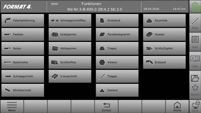 - Program s funkcijami obrade (žlijebovi, kutni odrezi, kalkulator, program za stepenice…)
