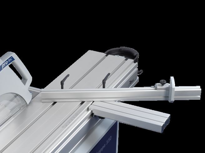 - Poprečni stol na kliznom stolu iz anodiziranog aluminija, s poprečnim vodilicom dužine 3200mm s dvoje stop sistema