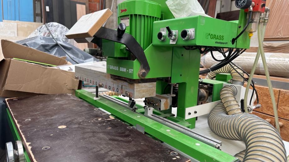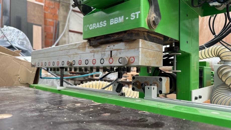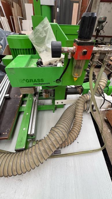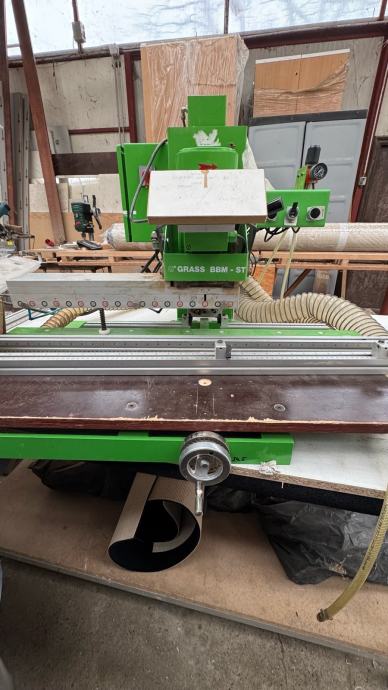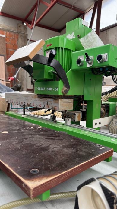 s 23 / 21 BORERA , 2 MOTORA , VRLO JEDNOSTAVNA JER SE VIDI SVE ŠTO SE BUŠI , U IZVSNOM STANJU, GORNJA GLAVA POMIČE SE ZA 90 STUPNJEVA ZA BUŠENEJ PERFORACIJA NA ORMARIMA DVA REDA ODJEDNOM . ODJEDNO SE BUŠI I OKOMITO 15 mm I HORIZONTALNO 8 mm RUPA ZA EXCENTAR . VRLO JEDNOSTAVN RAD .