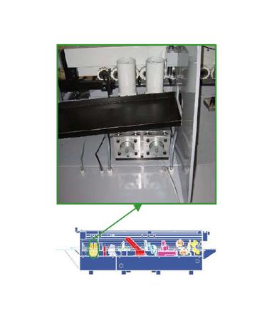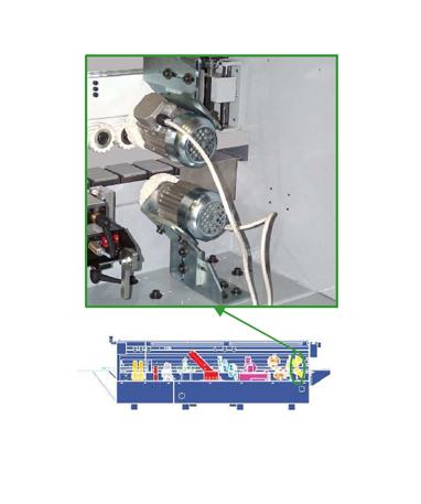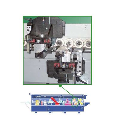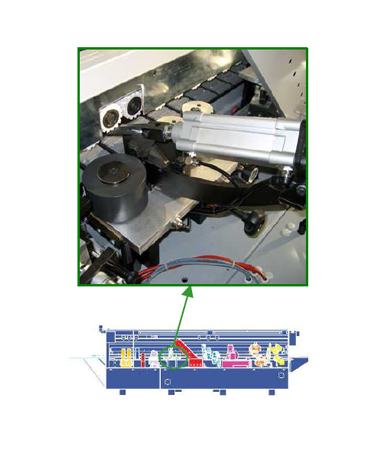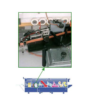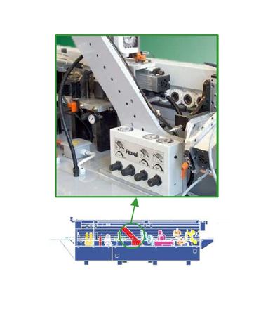 • Kako bi se postiglo savršeno nanošenje ljepila na ploču koja se obrubljuje, pomicanje spremnika ljepila postavljeno je na prizmatičnu vodilicu od 25 mm s kružnim klizačem.