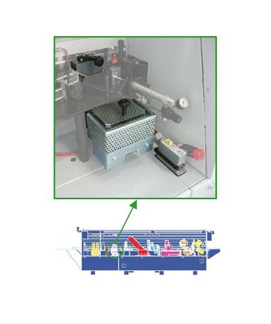 • Spremnik ljepila nalazi se ispod punjača trake i presvučen je teflonom kako bi se olakšala zamjena i čišćenje, opremljeno sa grijačima odgovarajuće snage.