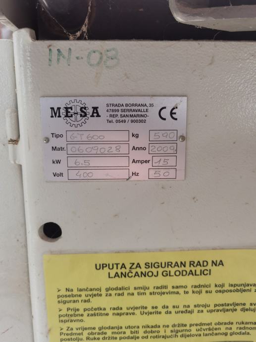 Prodajemo lančanu glodalicu MESA GT 600. Lančana glodalica sa 5 motora namjenjenu izradu utora za bravu, skrivene pante i izradu spojeva za prozore. Izrada svih utora za bravu u jednom potezu (izrada utroa za bravu, utora za čelnu pločicu, bušenje otvora za kvaku i ključ). Stroj ispravan kao nov. Razlog prodaje obrada vrata na CNC-u.