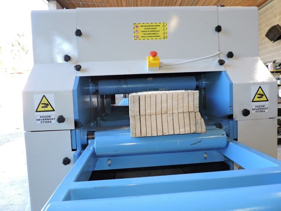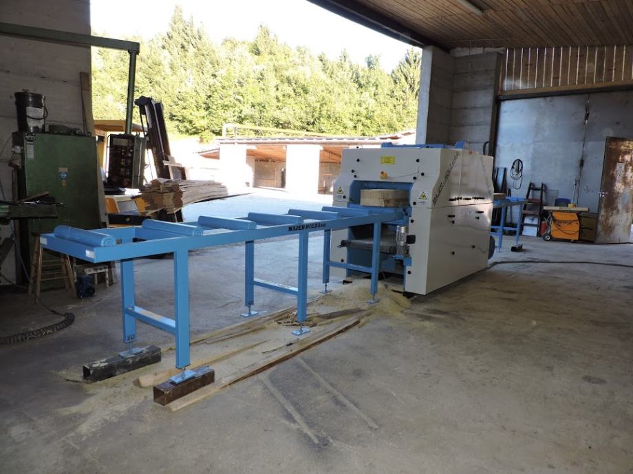 Prodamo mini gater za razrez prizem v deske. Gl. elektro motor 22kw. Max širina prizem 650mm max višina 250mm. Hidravlični valji. Pomik preko frekvenčnika. Hidravlični odmik dodatnih valjev, da je lažji dostop za čiščenje in menjavo žagic. K stroju lahko prilagodimo tudi rampo za nakladanje prizem, razne valjčne proge z izmetači ali brez njih ali pa naredimo pred mini gater podmizni čelilnik s katerim dolge prizme razrežete na točne dolžine in te odčeljene prizme pošiljate skozi gater. S tem prišparate na ljudeh saj boste z dvema v 8h naredili cca 17-20m3 elementov. Opis je narejen za žagarje, ki režejo embalažo za palete. 041-712-364 Tadej