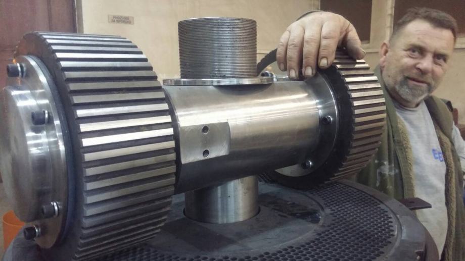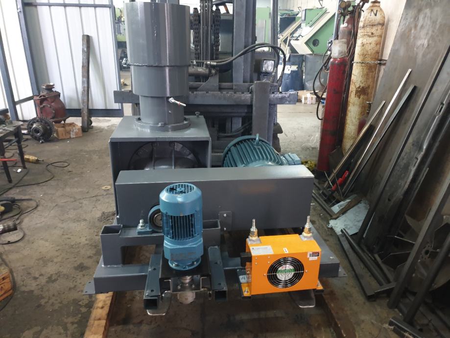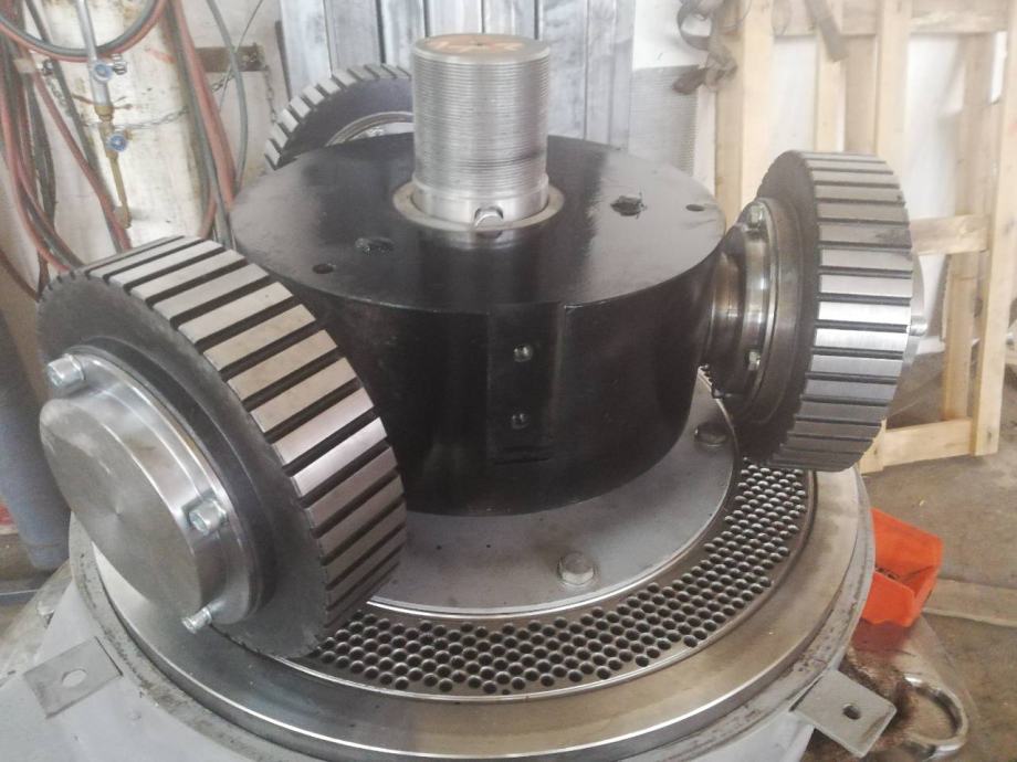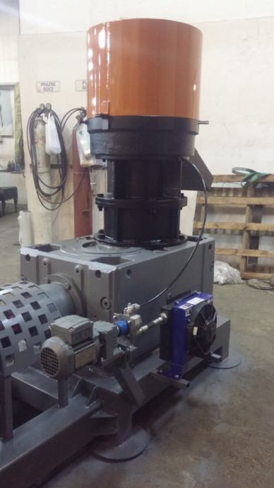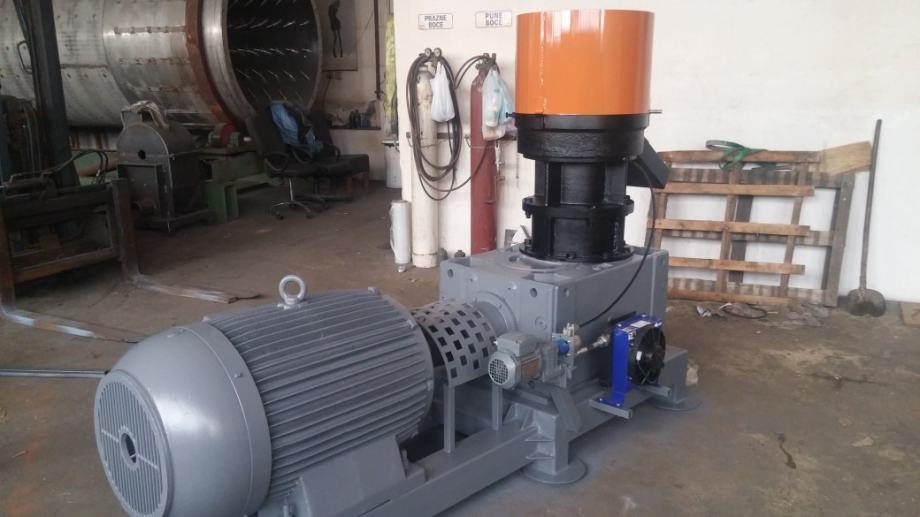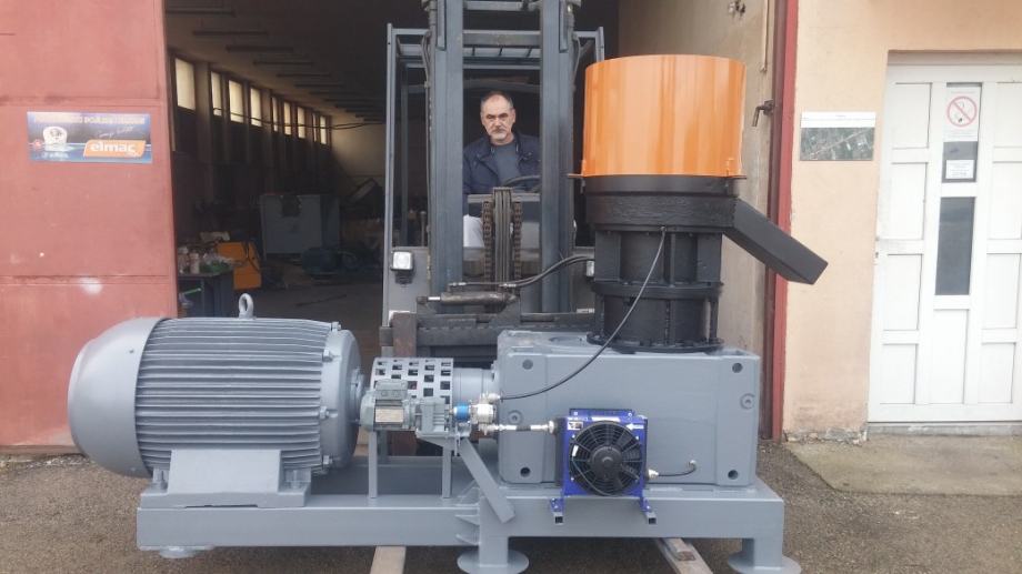 Peletirka snage motora od 55 do 90 kw,kapaciteta od 500 do 900 kg na sat tvrdog drveta,uljno podmazivanje tela prese sa hladjenjem ulja,matrica plocasta fi550 prilagodjena snazi elektromotora,liveno kuciste iz dva segmenta,sa dva rolera fi230-250 ili sa tri rolera po zelji.