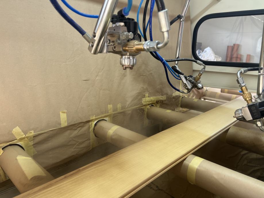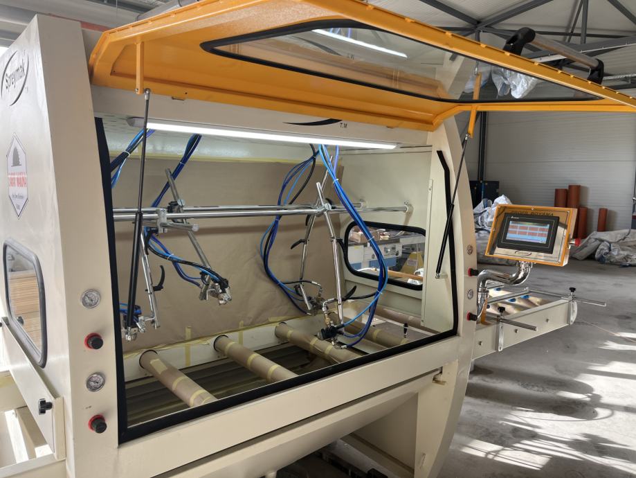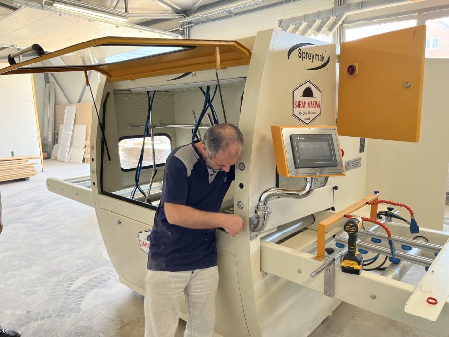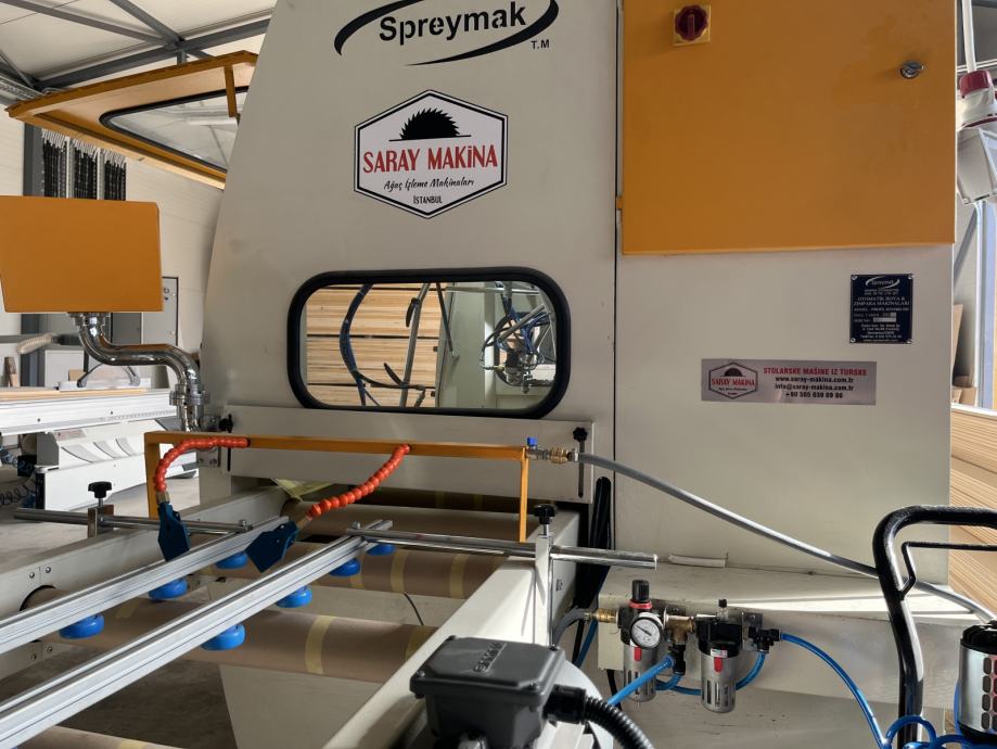 Protočna lakirnica Saray Makina 500 je visoko efikasan i izuzetno pouzdan stroj. Može se koristiti za farbanje i lakiranje lajsni, štokova, profila i svih drugih elemenata do 500 mm širine. U standardnoj opremi dolazi sa pumpom niskog pritiska i 4 pištolja, ali prema zahtjevu kupca možemo napraviti mnoge prilagodbe i adaptacije.