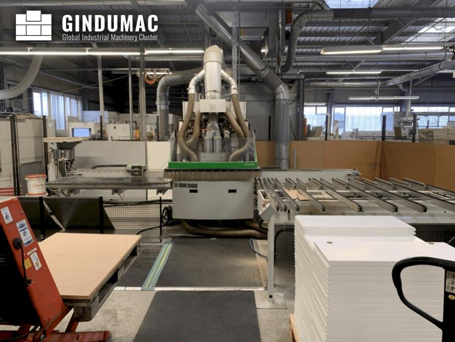 Ovaj Biesse Skipper 130 CNC centar za obradu ploča proizveden je 2011. Sadrži dvije procesne jedinice s 82 pojedinačno upravljiva alata, uključujući mogućnosti vertikalnog i horizontalnog bušenja. Opremljen robusnim električnim vretenom od 4,5 kW, obrađuje izradke do 3000 mm duljine i 1300 mm širine. Dodatne značajke uključuju jedinicu pile za utore i jedinicu za horizontalno umetanje tipli za ljepilo. Za više informacija o ovom stroju za obradu drva obratite nam se.