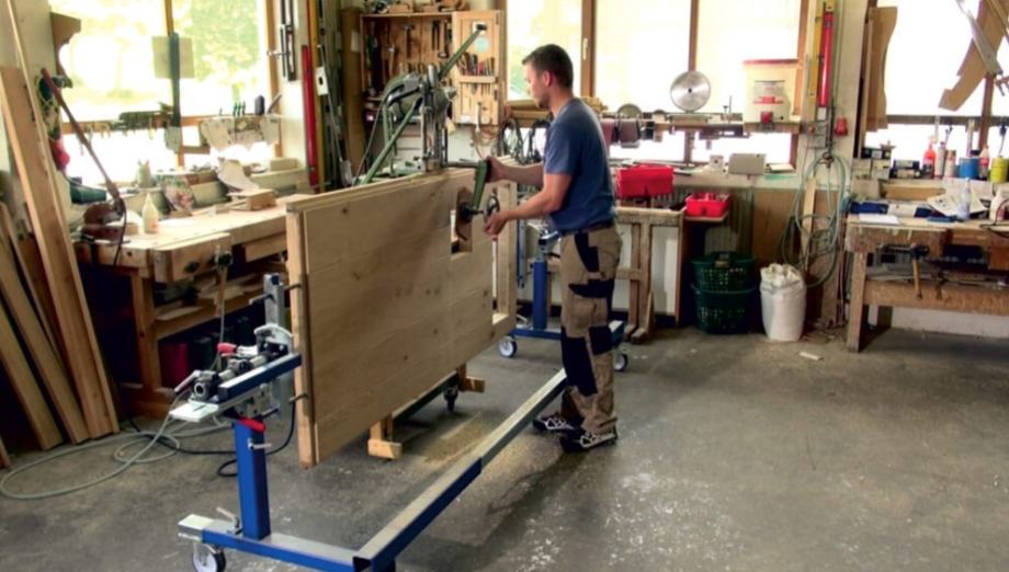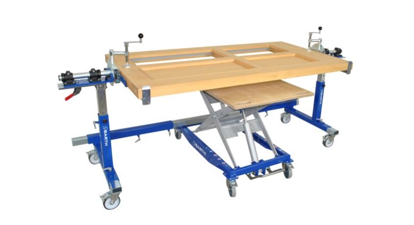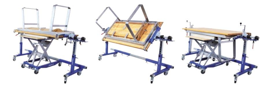 Veliki, teški obradaci kao što su ulazna vrata ili panelni elementi mogu se rastegnuti i okrenuti za 180°. Stabilna metalna konstrukcija je mobilna i stoga se može koristiti u svakom trenutku u svim dijelovima radionice. Rastezljiva poprečna veza okvira pričvršćena je straga. Ova izvedba ima veliku prednost jer montažu velikih i teških elemenata može obaviti 1 radnik sa stolom za podizanje.