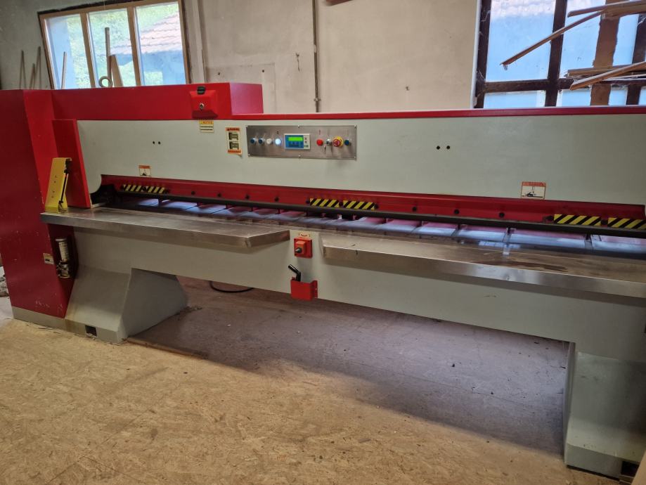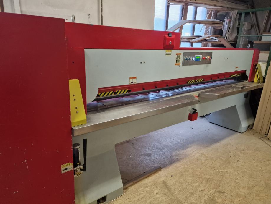 Furnirske škare winter 310 cm duljine, hidraulicne, motorizirani pomak stražnjeg guraca, zaštitni senzori za ruke. Stroj skoro nov, jako malo korišten te iz tog razloga i prodaje. Stroj se može vidjeti u radu.