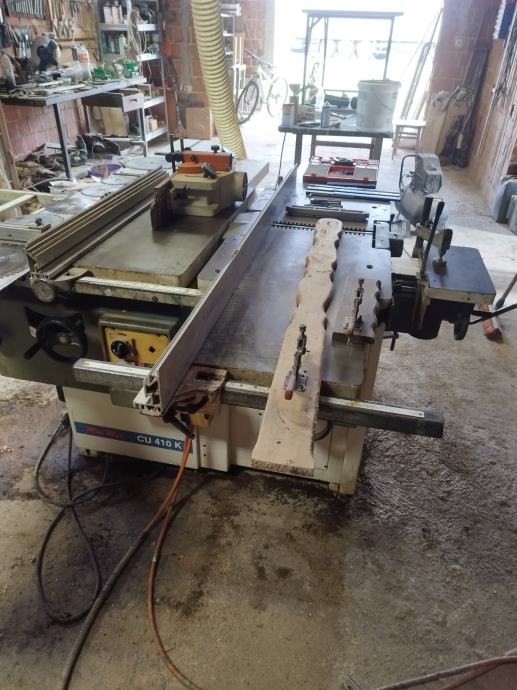 Stolarska kombinirka scm minimax cu 410 k.3 trofazna motora po 3 kW ima 6 operacija ima i pred rezač klizna staza 3,20 mi, i ventilacija u cijeni motor trofazni 2 kw.u cijeni je sve što vidite na slikama te se sve prodaje u kompletu.sve ispravno i točno.moguča manja korekcija oko cijene.