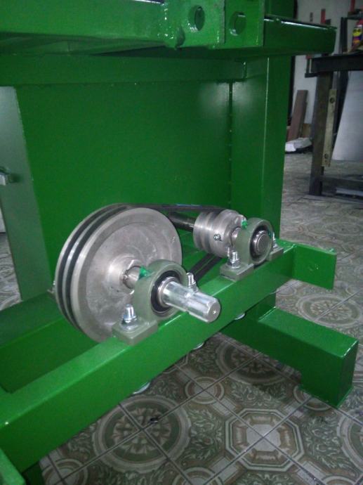 Stroj je rađen je po standardu tračnih pila za poprečno rezanje, s potrebnim omjerima i brzinama. Omjer pogonske i gonjene remenice je 1:2,5 čime se postiže optimalna brzina pile od 25m/s na 400 okretaja kardanskog vratila.