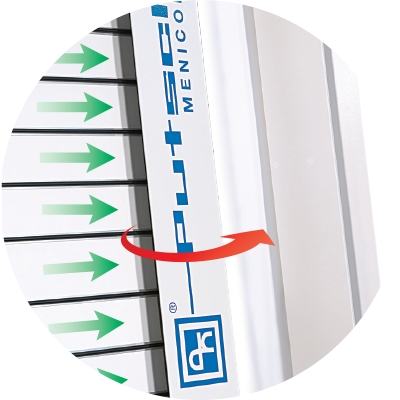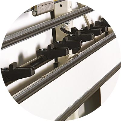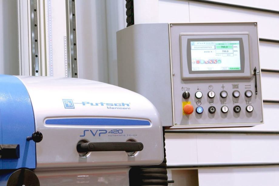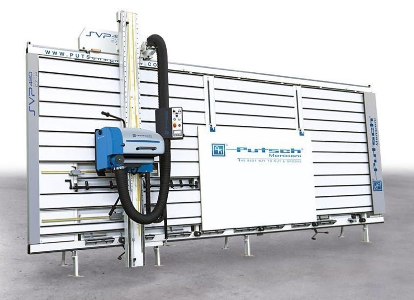 Vertikalna pila SVP 420 Putsch® Meniconi pristupačna je i jedinstvena u svojoj klasi, s dva motora (pila, dvojni rezač) i jedinicom za piljenje koja se kreće duž dvije linearne vodilice. Također ima motorizirane pomične vodoravne potporne šipke već u standardnoj konfiguraciji, tako da se potporne trake ne oštećuju tijekom vodoravnog rezanja.