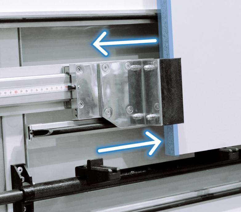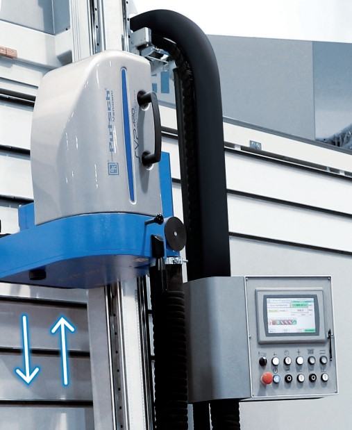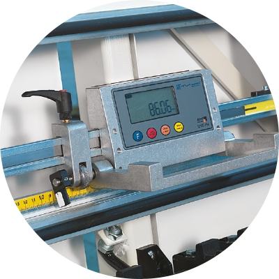 Vertikalna pila SVP 420 AUTOMATIC TOUCH može postaviti dimenzije za okomite i vodoravne rezove putem zaslona osjetljivog na dodir. Položaj jedinice pile za vodoravne rezove i graničnik za okomite rezove može se postaviti putem zaslona osjetljivog na dodir.
