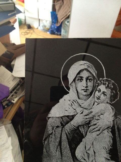 CNC stroj za graviranje slika na spomenicima, kamenu i staklu. Moze zamjena za razno ili manje vozilo. Nudim i uslugu graviranja na plocicama kao sto su na slici pa se lijepe na spomenik ili direktno graviranje. Stroj moze raditi u svim polozajima. I na terenu okomito direktno na spomenik i u radioni na vodoravnoj ploci. Isto tako moze raditi sliku neogranicene velicine. Ukoliko je slika veca od radne povrsine moze je u segmentima napraviti. Kontrola jacine udarca igle i dubine graviranja.