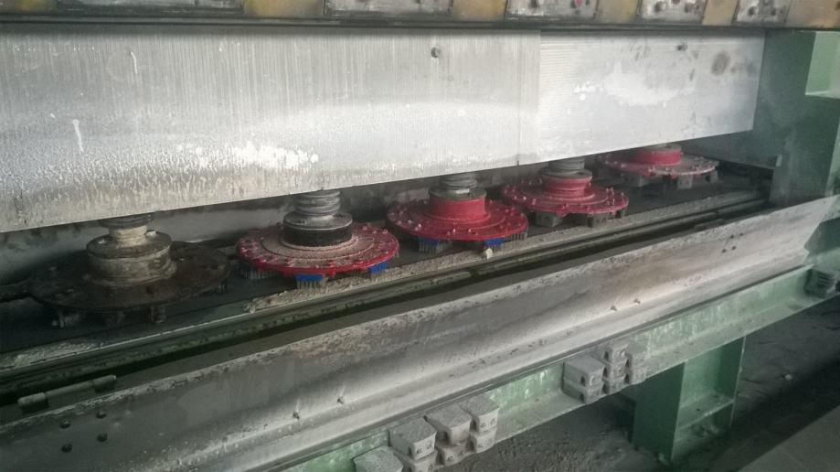 Linija za poliranje Technomec 1+10 sirine 45 cm. Generalno obnovljena do detalja. Nova traka, postolja od trake ,nosaci od postolja trake,pjeskarena,obojana potroseno 60 kg boje, novi lezajevi ,elektricna instalacija, zastite,platforme,nosaci platformi zracna instalacija ,cilindri , gumene spojke,platforme ,nosaci platformi bocne vodilice ,cistaci i vodlilice trake,vodovodne instalacije,dijamantni segmenti na kalibratoru , elektonika. Ukratko sve do detalja,prakticki novi stroj