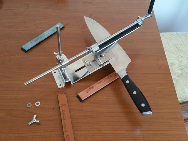 Najvažnije kod oštrenja noževa je kut pod kojim se drži nož na kamenu. Ako se radi ručno taj kut nikad ne može biti isti i konstantan, pa dolazi do nepravilnog oštrenja. tj oštećenja oštrice, te nikako ne možete dobiti idealnu oštrinu.