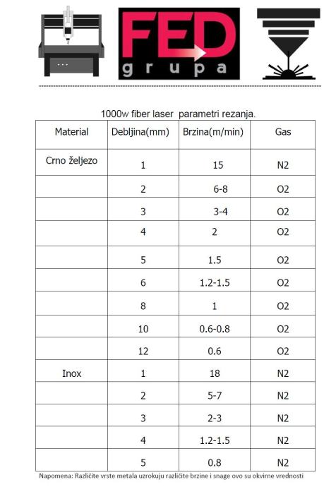 Napomena: Fiber laseri !!!NE REŽU!!! nemetale, drvo, plexi i slično