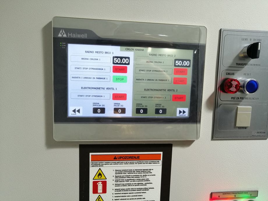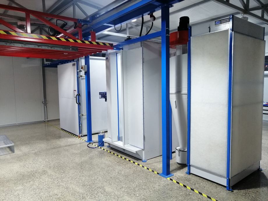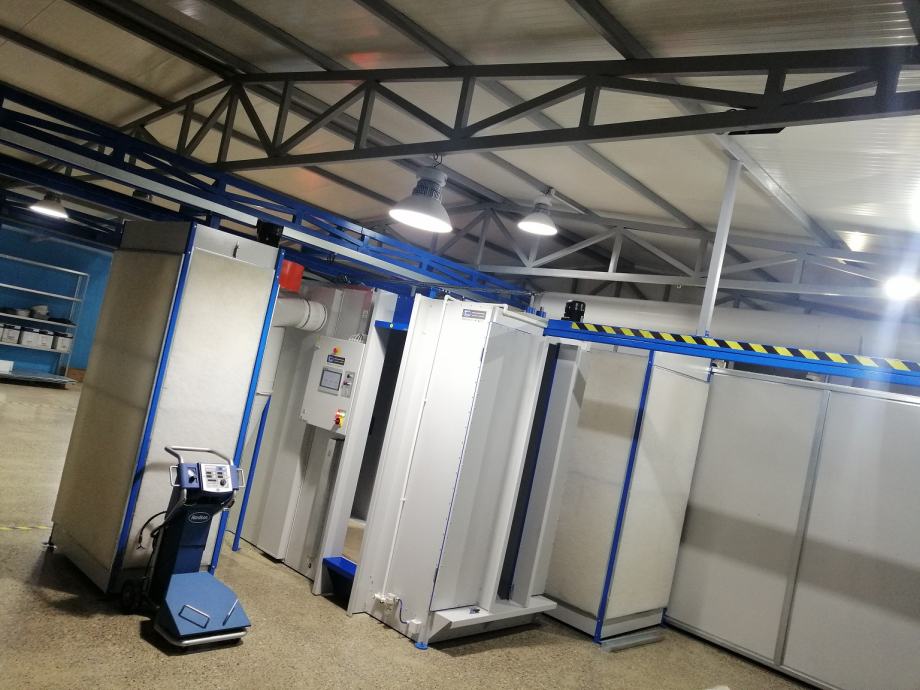 Kompletna ,nova oprema tipa DUPLEX za obostrano farbanje-plastificiranje . Sarzna farbara velikog kapaciteta ,vece brzine farbanja , odlicnih radnih karakteristika, predvidjena za obostrano farbanje komada bez rotiranja… Opremu cine: Ciklon kabina sa dva /2/ radna mesta orijentisana dijagonalno jedno nasuprot drugom, dva /2/ ciklona separatora, dva /2/ NORDSONOVA uredjaja za farbanje ,integrisani komandno upravljacki orman upravljan PLC-om I ekranom osetljivim na dodir, Pogonska platforma ciklon kabine ,pec na GAS dimenzija 6,8x2,2x1,4m,sa mehaničkom pregradom 1/2 i izborom grejanja 1/1 ili1/2 …. MOGUCNOST PROSIRENJA KAPACITETA I NADOGRADNJE. FARBARA PRILAGODJENA PLASTIFIKACIJI DUGAČKIH RADNIH KOMADA ,KAO I KOMADA SLOZENE GEOMETRIJE.../ALU profili,ograde i kapije,konstrukcije,metalni namestaj...itd/
